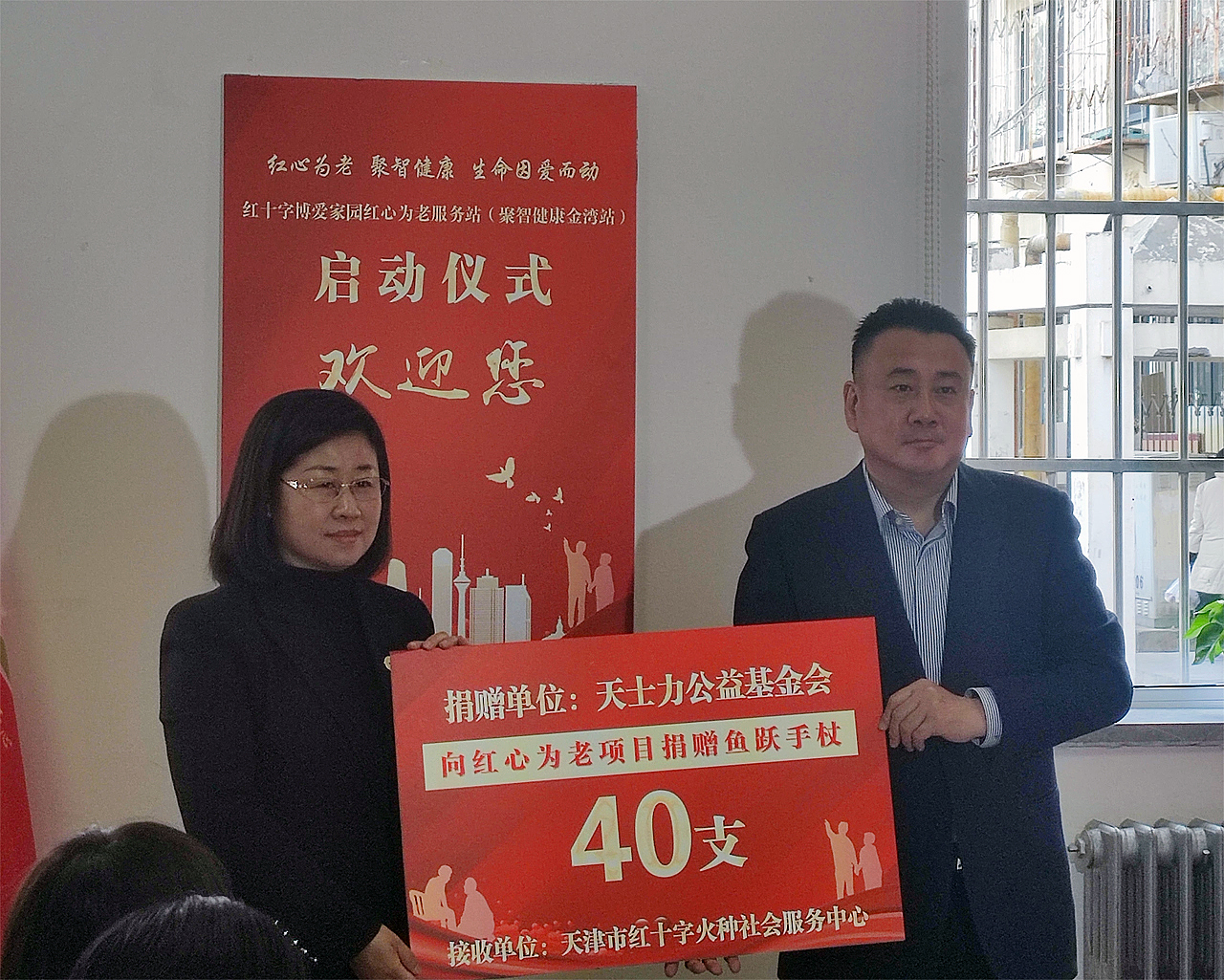 同时,金年会金字招牌公益基金会秘书长叶军代表金年会金字招牌公益基金会向天津市红十字会红心为老项目捐赠老年人服务用品。